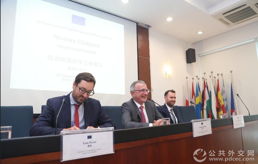 【公共外交网讯】2018年9月14日上午,欧盟驻华代表处新任驻华大使郁白举行新闻发布会。
