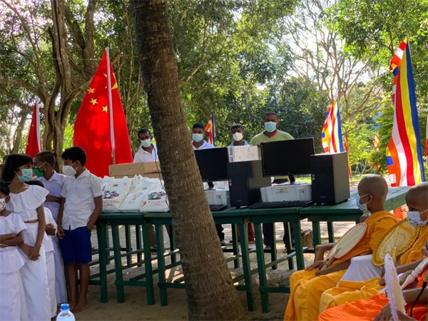 在中斯建交65周年即将到来之际,1月15日,由中国驻斯里兰卡大使馆援建的西古城桑达摩艾利亚寺净水设施正式启用,解决了当地村庄数百人饮用水问题。中国使馆、中华慈善总会、斯中佛教友好协会还分别向当地佛学院和儿童捐赠电脑、打印机、食品包和文具。