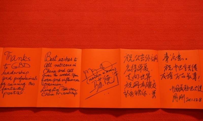 马苏德·汗大使和周刚大使为GBD公共外交文化交流中心和公共外交网题词