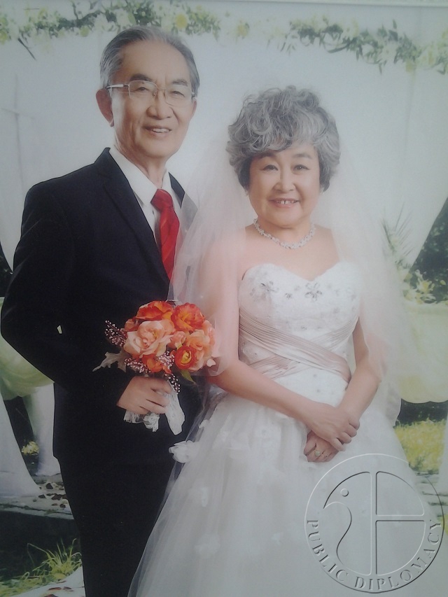 2013年4月,在父母金婚50年时,我为父母补拍了结婚照。当年妈妈扎着个马尾辫就嫁给了爸爸,50年来他们的相濡以沫也深深地感染了我。但我深知这依然弥补不了我未能在父母膝下尽孝的遗憾。现在他们已逐渐理解我的事业,为了两国之间的贸易谈判和双边合作的长远发展,我作为这中间的纽带与桥梁是必须的。