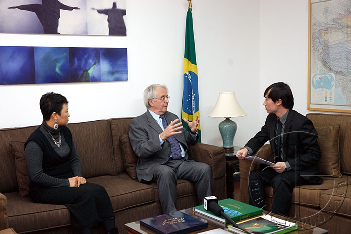 胡格内大使首先介绍了中国和巴西两国的经贸合作情况。他表示,中国同巴西自1974年建交以来,经济贸易关系迅速发展,尤其是最近这几年。十年前中巴两国贸易总额仅限于30-40亿美元,而2011年两国贸易总额已经超过了800亿美元,这是两国经济互补性增进的结果。最近几年,发达国家的经济增长速度放缓,这使得中国和巴西的贸易交流日益增加,中国日渐成为巴西国际贸易最大的合作伙伴。