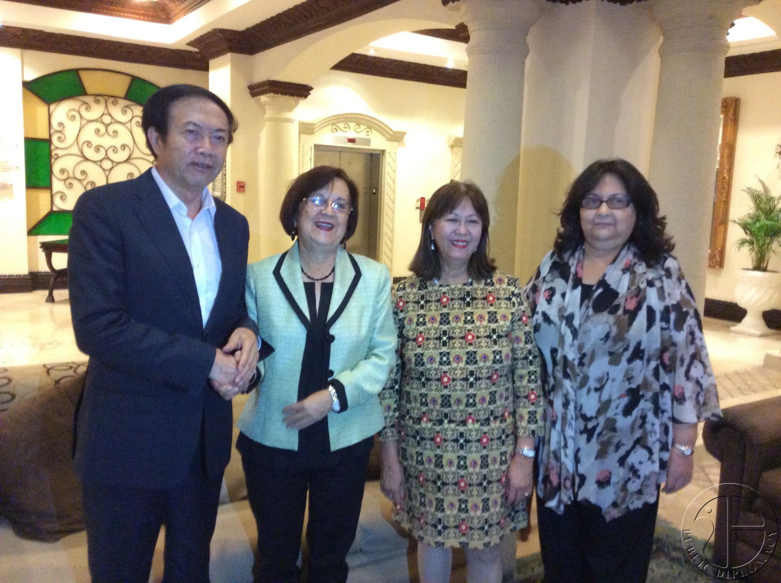 洪都拉斯文委主任莫莉纳(左二)拜访袁熙坤,多米尼加驻中国代表吴玫瑰(右二)