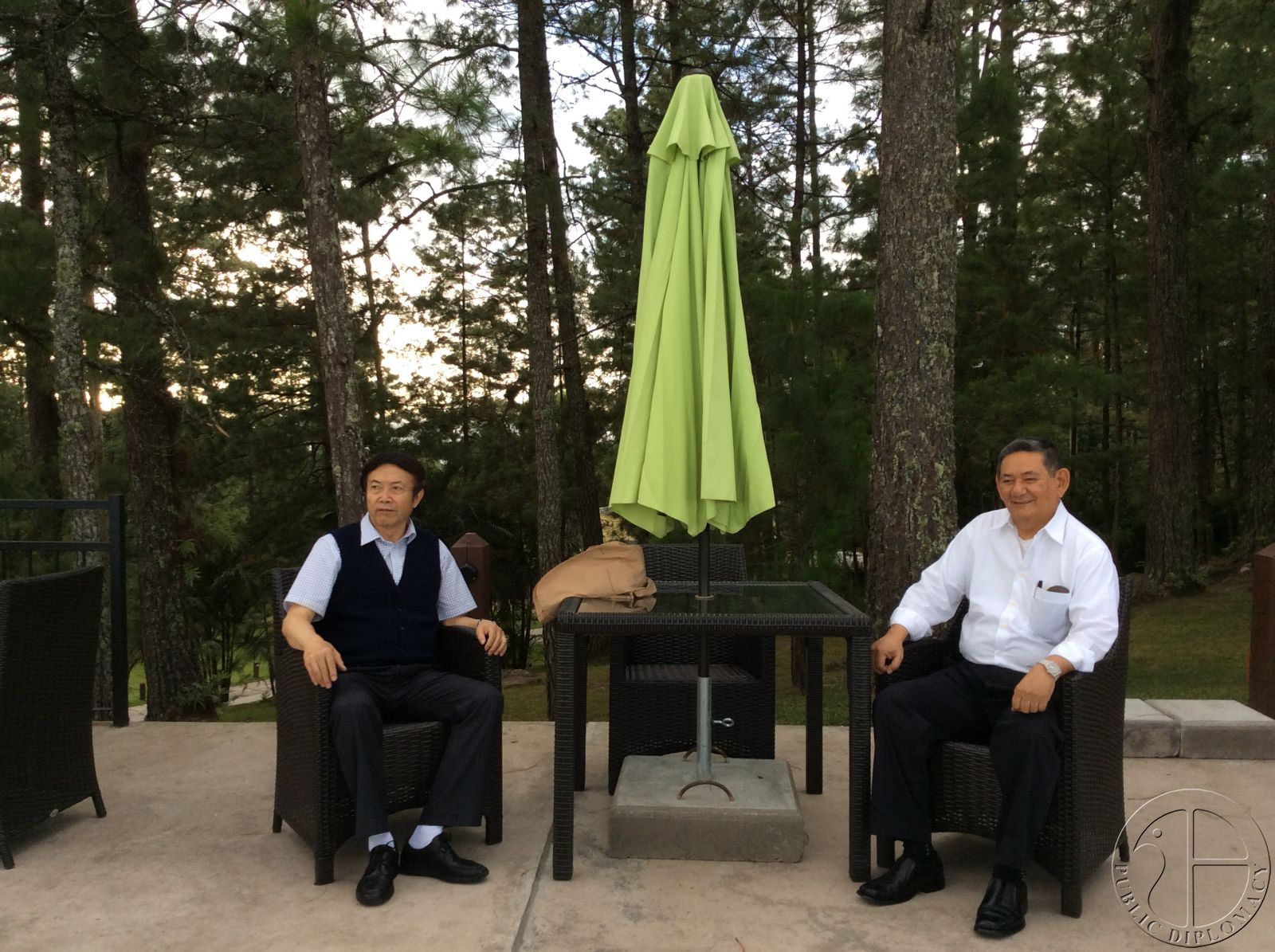 2014年袁熙坤生日当天,与洪都拉斯时任三军总司令熊伯雄将军(右)在山顶过生日