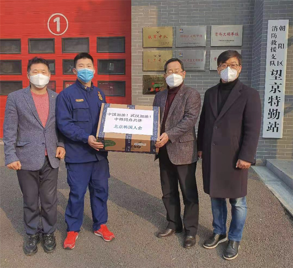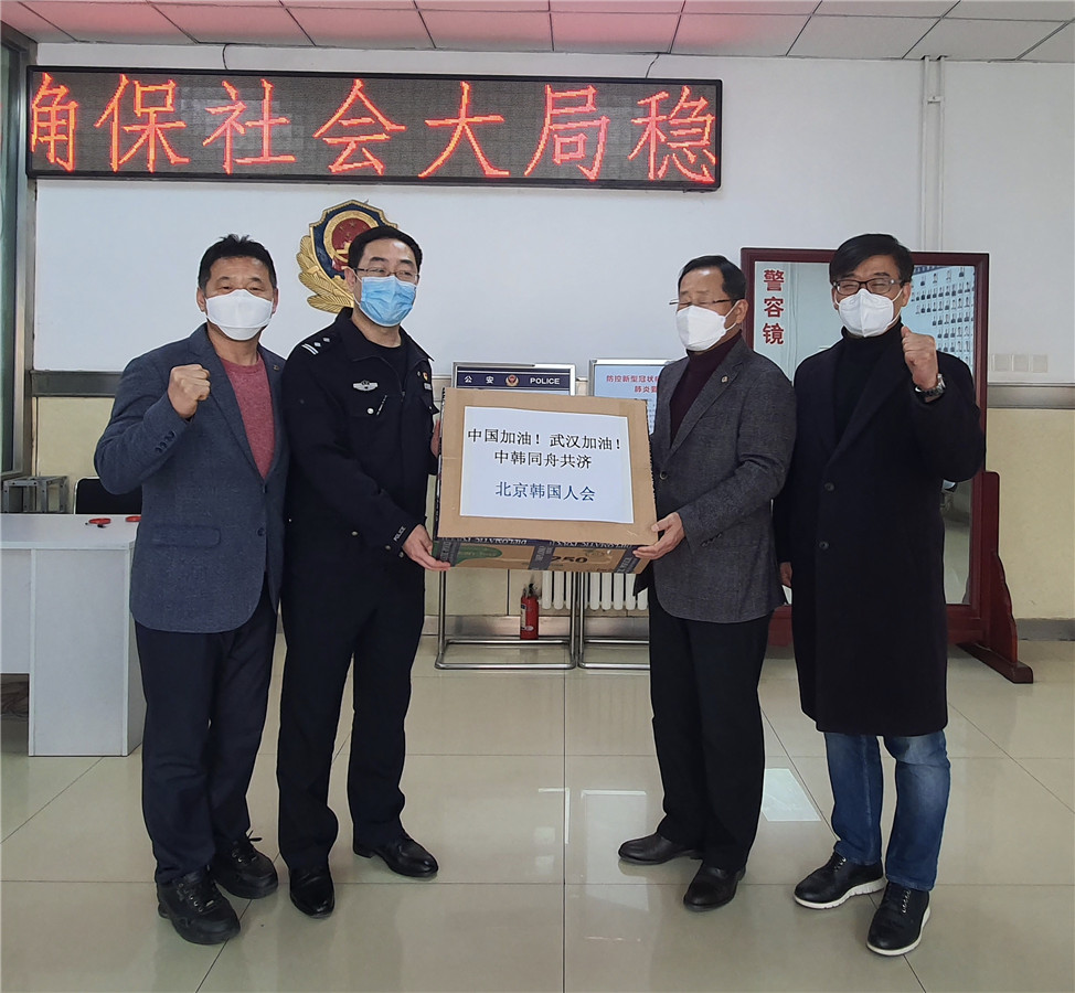 2020年2月12日,北京韩国人会向中方相关机构捐赠物资,支持中国抗击新冠疫情。