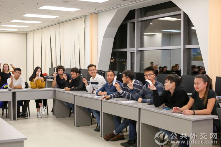 席浚斐(右六)与俄罗斯远东联邦大学的同学们在一起