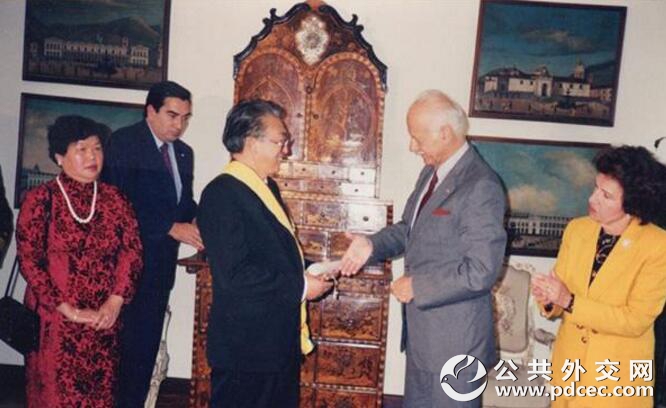 图为徐贻聪接受厄瓜多尔总统希斯托·杜朗颁发的勋章