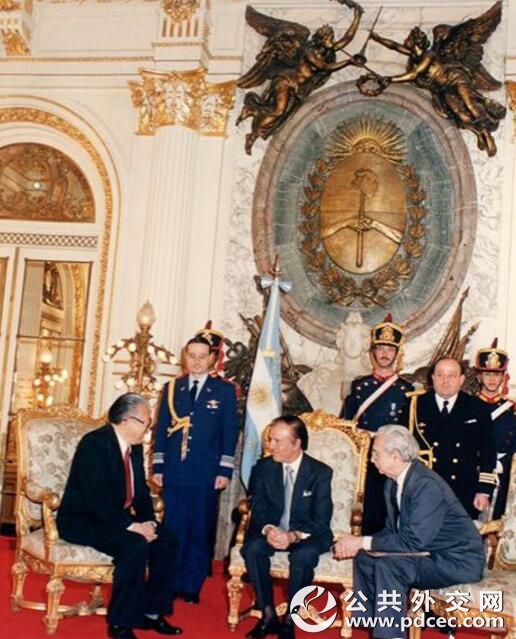 图为徐贻聪向阿根廷总统梅内姆递交国书后亲切交谈。