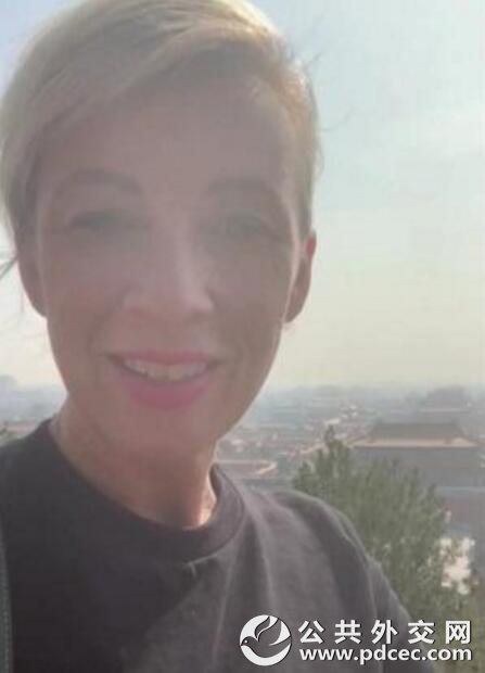 视频中,扎哈罗娃站在景山上,向观众微笑招手,并用中文说,“大家好,今天来到了北京……”身后的背景则是故宫。