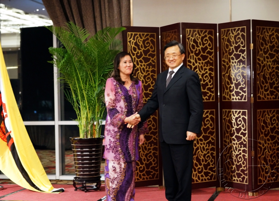 文莱驻华大使张慈祥(左)与中国外交部副部长刘振民握手