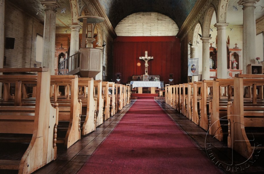 弗朗西斯科·乌比亚在介绍时表示,奇洛埃群岛上的居民重视平静生活,教堂均使用木头材料并以白与蓝为主要色调;白色代表纯洁、和平和欢乐的时光,而蓝色象征贞洁、威信和奉献。这些木制教堂建筑和周围景致、自然环境组合组合在一起,成为完美、和谐的统一体,展示了奇洛埃岛屿的精神面貌。
