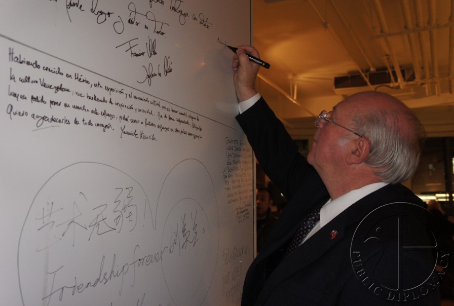 智利驻华大使路易斯·施密特与艺术家在作品前合影