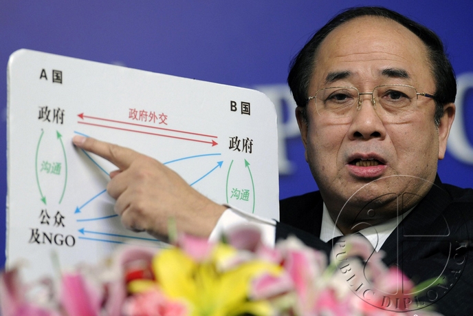 赵启正先生是浦东新区筹委会主任,在领导浦东发展的过程中,赵启正先生与全球众多商界领袖和政府领导人成为朋友。在此过程中,他认识到中国被全世界更好地了解的至关重要性。后来,在历任国务院新闻办公室主任和全国政协外事委员会主任期间,他成为中国公共外交领域的倡导者。最近几年一直致力于提高中国的国际形象,出版了许多这方面的专著《向世界说明中国》、《江边对话》、《对话:中国模式》、《跨国经营公共外交十讲》等,其中许多被翻译为英、西班牙、德、俄、日、 韩等文出版。