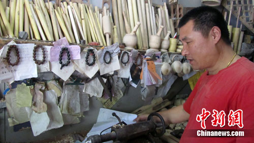然而,杨宝林依然坚守着这一方净土,在西安闹市区民乐园的一角租了个不到10平米的房子,日复一日、年复一年的与各种木制品为伴,将那些平凡的木头制作成各种模具、生活用品或是手工艺品,满满地摆放在小屋里,“每每看到这么多自己亲手制作的木制品就觉得欣慰不己。”他说。