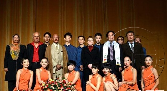 阿尔及利亚文化部长图米,中国驻阿尔及利亚大使刘玉和、使馆文化参赞石岳文等嘉宾与演员合影