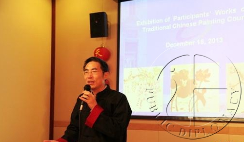 马耳他文化中心主任顾洪兴对学员顺利完成中国画培训并取得优异成绩表示祝贺。他说,为满足马耳他国画爱好者的需求,继去年举办第一次国画学习班后,今年11月文化中心又特邀青海专业国画家张建青开办了为期2周的“中国画培训班”,通过培训,各位学员都创作了非常优秀的作品,今天的画展就是这一优秀成果的体现。顾洪兴主任表示明年中心将继续不遗余力地举办各种文化活动,同时也希望会员们积极建言献策,与中心一起不断促进中马文化交流。