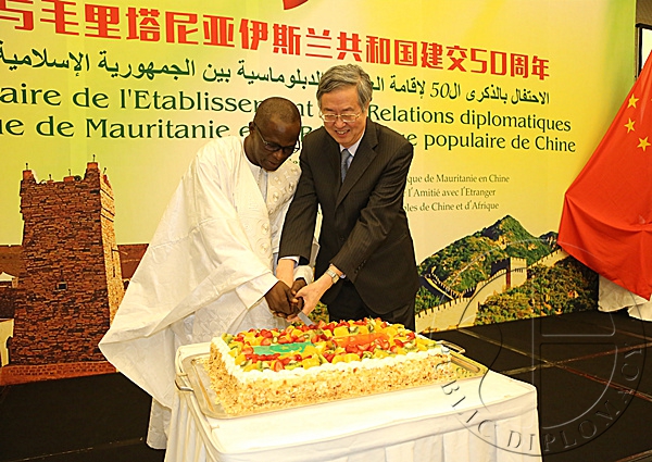【公共外交网讯】7月17日晚,中国与毛里塔尼亚建交50周年庆祝招待会在北京凯宾斯基饭店举行,招待会由中国人民对外友好协会、中国非洲人民友好协会与毛里塔尼亚伊斯兰共和国驻华大使馆共同主办。