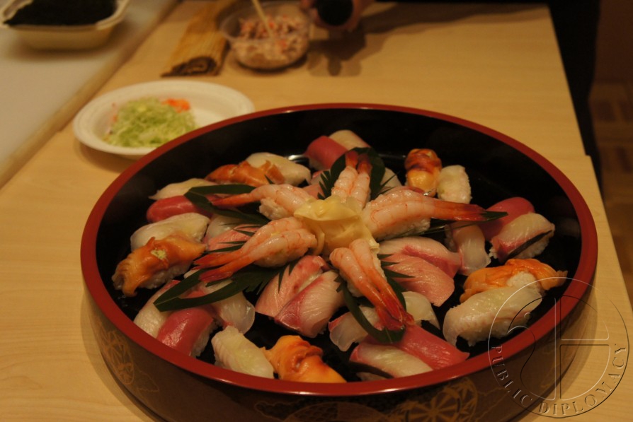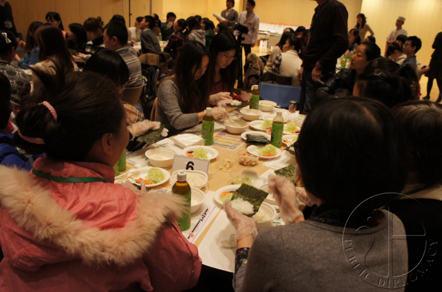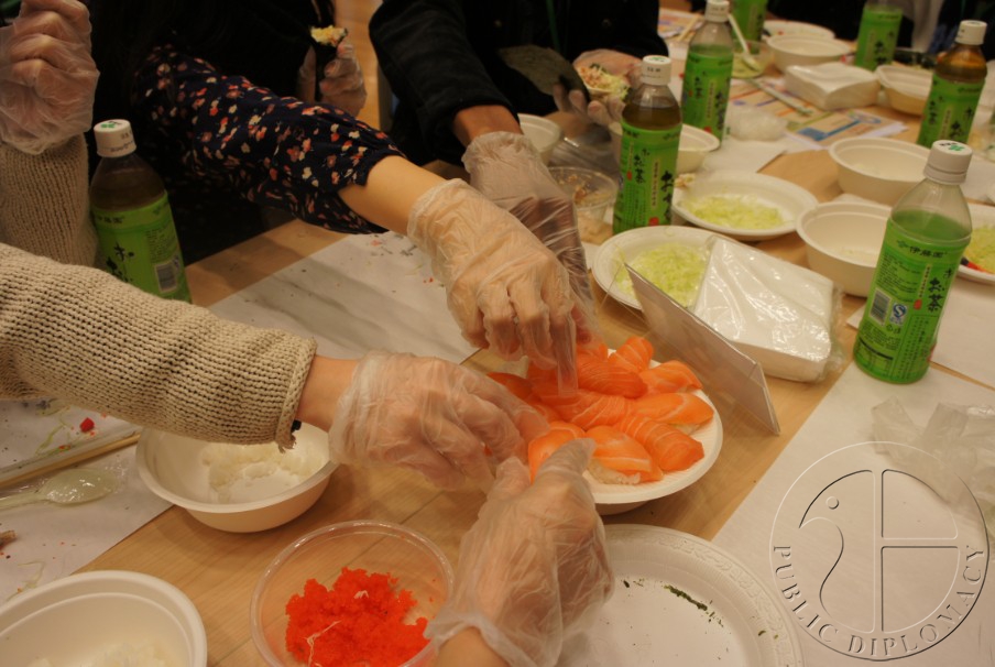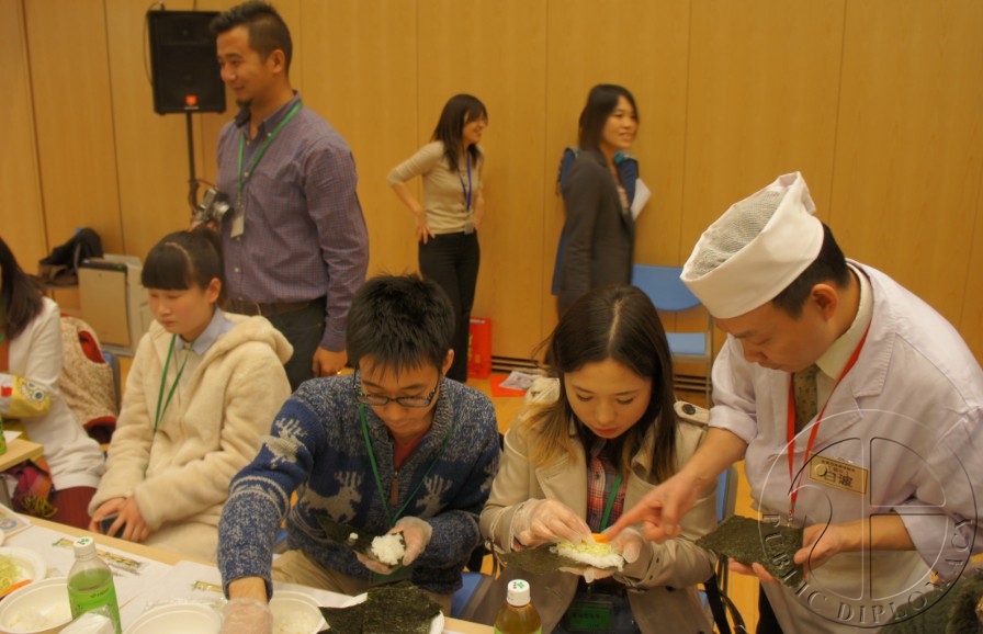 手卷寿司的示范与讲解由北京日本厨师协会会长小林先生主持。在小林先生热情而细致的讲解下,跃跃欲试的众人也纷纷动手制作寿司。他们的尝试也得到了使馆与北京日本厨师协会工作人员的“手把手”指导。在轻松而愉快的氛围中,不同国籍的人们相互交流、帮助,品尝着自己做好的寿司,在享受美味与快乐的同时也加深了对日本饮食文化的了解。(文/公共外交网记者黄瑜蓉)