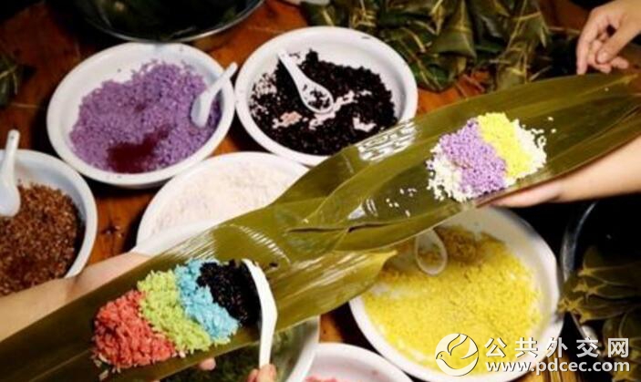 资料图:广西山区壮族同胞赶制五彩粽子迎端午。