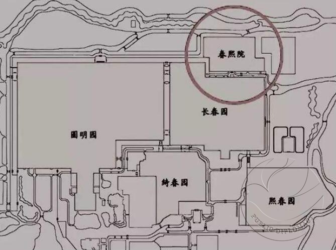 一直以来,诸多专家学者认为春熙院位于北京大学校园的北部区域,“未名湖以北的镜春、朗润、鸣鹤三园一带”。但也有学者根据样式雷《圆明园以东水道图》认为,春熙院应在长春园的北部。