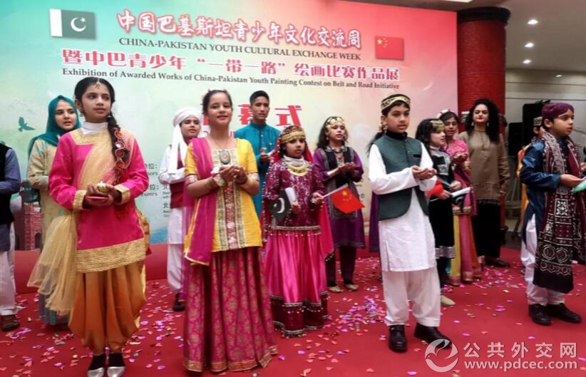 与会人员参观了中巴青少年的优秀绘画作品,并观看了两国青少年表演的独具特色的节目。婉转悠扬的民乐、深情饱满的乌尔都语诗朗诵、奔放洒脱的舞蹈还有展现中巴友谊的短剧,都给观众们留下了深刻的印象。