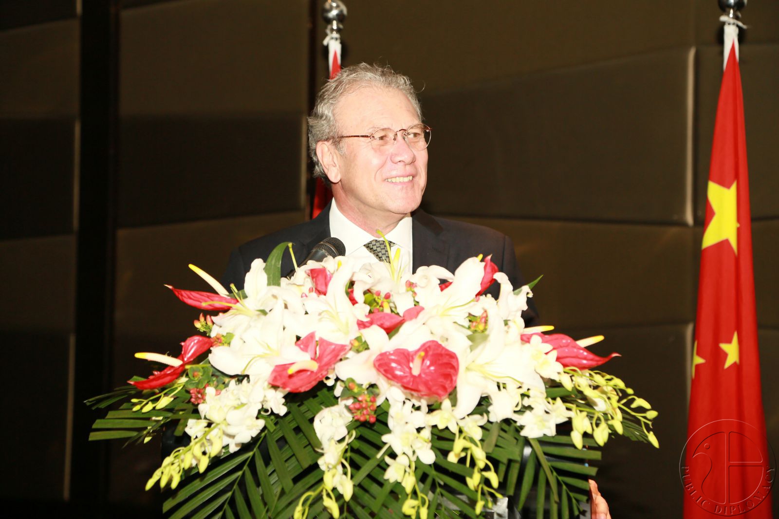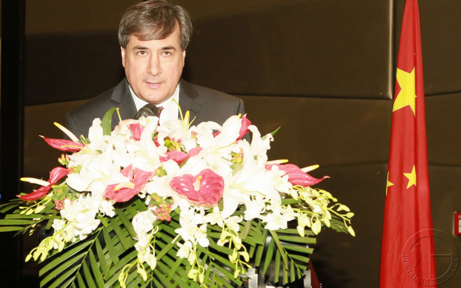 秘鲁前驻华大使贡萨洛·古铁雷斯于2012年被任命为秘鲁驻华大使,在中国工作近三年期间他走访过中国的许多城市和地区,亲身体验和了解中国国情与环境,为秘中两国紧密联系与友好合作做出了巨大努力。他于今年6月23日荣任要职为秘鲁外交部部长。在宴会致辞中,古铁雷斯大使表示,他为被派驻到中国这样一个伟大的国家工作感到荣幸。并强调秘鲁政府委任驻华大使为国家外长,体现了秘鲁国家对与中关系的高度重视,是对过去的日子里他本人工作的认可,也是对支持和帮助他工作之人的高度认可。