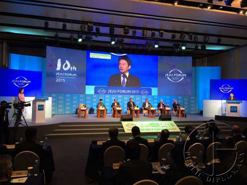 济州论坛创办于2001年,宗旨是“和平与繁荣”。本届济州论坛为期两天,议题涉及和平、繁荣、可持续性、多样性、竞争力等,邀请了外交、经济、环境、女性、教育、文化等领域的多国专家展开广泛讨论。据悉,本届论坛吸引了4000余名人士参加。