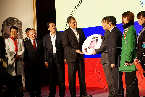 活动开始,公共外交中心执行会长马振轩首先发表致辞,他表示,科雷亚总统的莅临使公共外交中心蓬荜生辉。厄瓜多尔在科雷亚总统的带领下在经济发展于环境保护之间找到了新出路,取得了巨大的成就,而这正是公共外交中心作为一家公共外交机构所着力在中国推动的,因为只有可持续发展才能带来美好的未来。为表达中国人民对科雷亚总统的崇高敬意,公共外交中心画家于成松创作了一幅总统的巨幅肖像画作为礼物赠予总统。