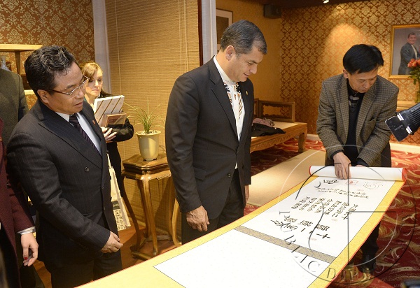 公共外交文化交流中心向科雷亚总统赠送用其肖像画烧制的中国瓷盘