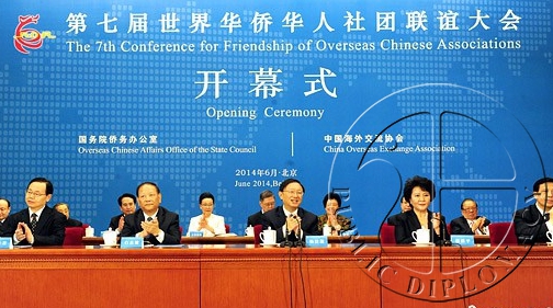 由中国国务院侨务办公室和中国海外交流协会共同举办的“第七届世界华侨华人社团联谊大会”6日在北京人民大会堂开幕。来自119个国家和地区有影响力和代表性的华侨华人社团及华人社区服务机构负责人500余人与会。