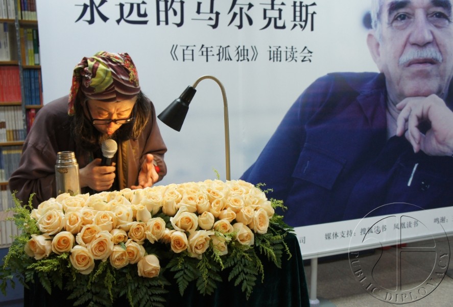 《百年孤独》诵读会由哥伦比亚驻华公使卢秋先生领读,他朗读的是这部小说的西文版第一段。在诵读之前,卢秋先生面带微笑向众人展示这部继《堂·吉诃德》后再度震惊世界的西班牙语文学经典,称“这是一部伟大的作品,也是一部爱的作品”,他非常高兴中国读者“通过本书了解拉丁美洲,了解哥伦比亚”,并且表示“永远的马尔克斯将一直在中国,也在哥伦比亚”。