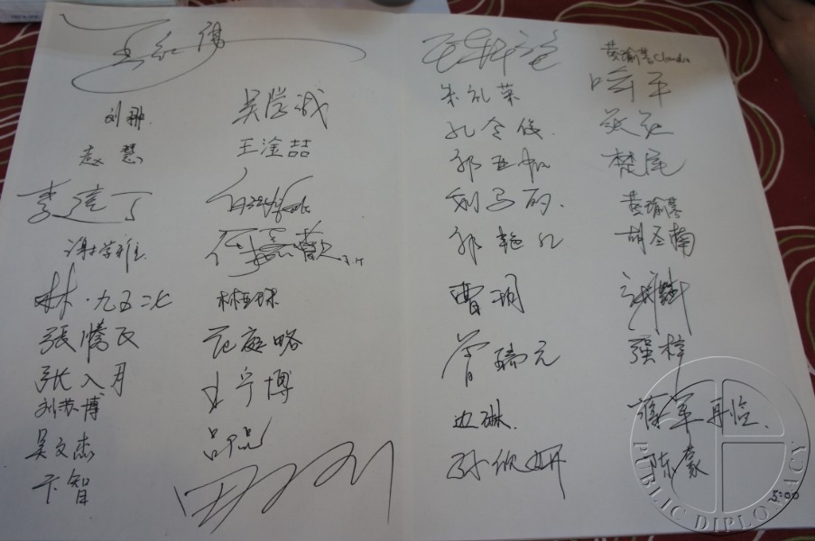 每一位朗读者在他所朗读的书页空白处留下自己的名字