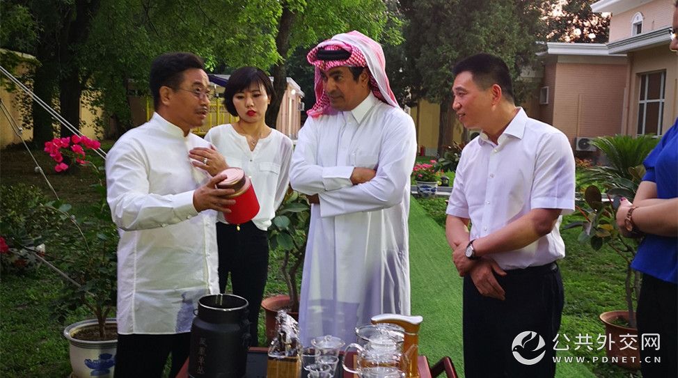 2020年6月9日,卡塔尔驻华大使穆罕默德·阿卜杜拉·杜希米在官邸会见公共外交中心会长马振轩。杜希米大使对公共外交文化交流中心的工作给予高度赞赏。他对天津项目表示支持,并表示深圳大亚湾惠州石化项目符合卡塔尔投资相关政策。双方畅谈合作、互赠礼物、共叙友谊。