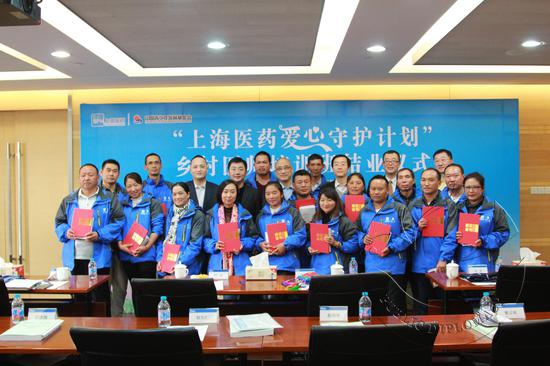 “上海医药爱心守护计划”—首届乡村医师培训班结业仪式日前在上海医药集团总部举行。“上海医药爱心守护计划”共同发起者上海医药和中国青基会领导、本届培训班指导单位上海市卫生计生委领导均出席了活动。而主角,是来自云南受援建地区三个州5个县14个村的14位乡村医生。经过一周36节课的医学培训,这14名白衣天使都拿到了“上海医药爱心守护计划”首届乡村医师培训班的结业证书,每人并同时获赠全套课程讲义以及两本医学工具书: 基层医生门诊手册、全科医师急症处理手册。