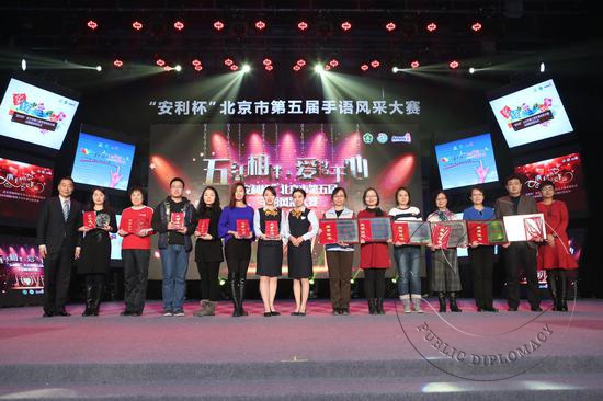 近日,“五年相伴 爱铭于心”——“安利杯”北京市第五届手语风采大赛颁奖仪式在空军指挥学院礼堂成功举行。市残联巡视员、市残疾人福利基金会理事长梁田等各主办单位领导、参赛团队领导及手语爱好者700余人出席活动。