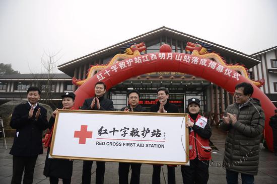 近日,幸福天使“美丽中国行”全国博爱救护行动在江西省的首个援建项目——宜春明月山景区“红十字救护站”落成揭幕。
