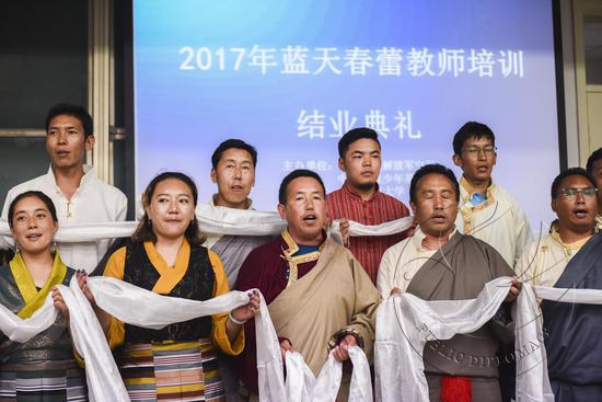 空军政治工作部群联局局长张守良表示,教育大计,老师为本。从2012年起,空军会同儿基会开始实施蓝天春蕾教师培训计划,从空军援建的春蕾学校中遴选优秀教师组织专门培训。从这几年培训情况看,老师普遍反映开阔了眼界,提升了能力素质。希望老师们都能做爱心的传播者、做民族团结的光荣使者,让孩子们一起感受党和政府的关怀,感受人民子弟兵的深情厚谊。