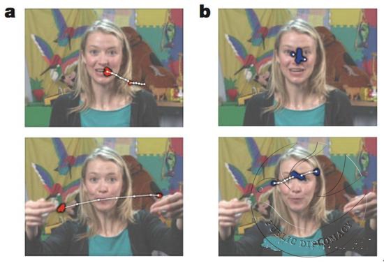 通过两图比对我们可以看到6个月大的普通婴儿注视图中女人眼部的比例比较高,孤独症患儿往往盯着嘴、身体或物体看;这种异常的眼部注视方式会使儿童在交流过程中损失大量面部信息,从而丧失交流兴趣。