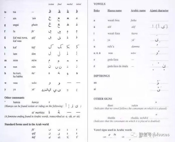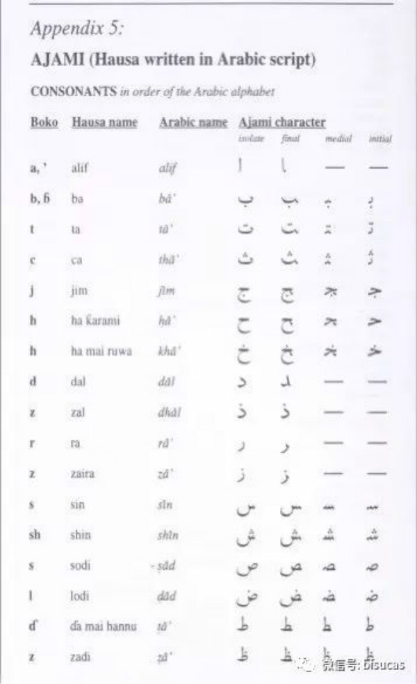 17世纪起,豪萨地区使用阿贾米(Ajami)文字进行书写,即以阿拉伯字母拼写的豪萨语。19世纪后逐渐改为拉丁字母并沿用至今。传统豪萨语吸收了大量的阿拉伯语汇,特别是在宗教、行政、法律、教育等方面;现代豪萨语则借用了大量的英语词汇。