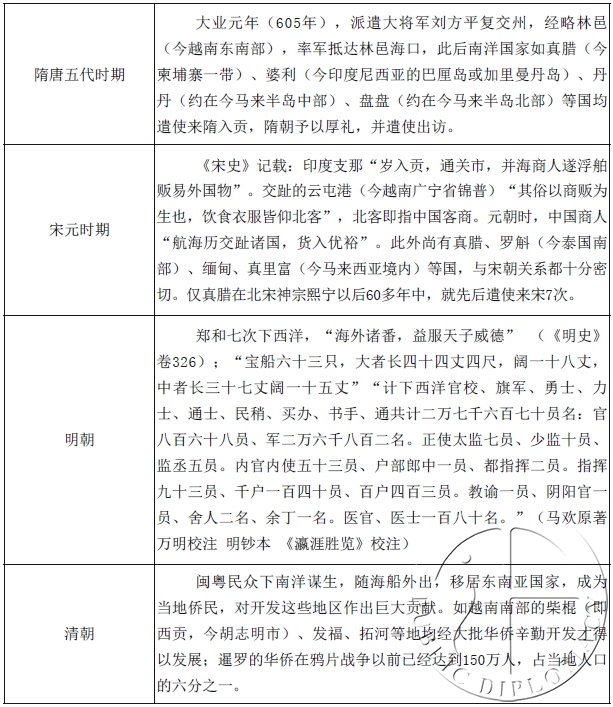 表1 各个历史阶段中国与东南亚国家交往活动