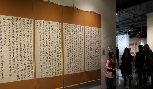 当日举行的“汉字之体-齐家之道”书法作品展,是国家艺术基金项目的首展,共展出作品120余件,书写了70多位中国古代政治家、思想家、艺术家及不同家族的家书、家训,从公元前1100年到清朝末年,时间跨度近3000年,既是对汉字书体演变的展示,也是中国家教、家训史的展示。