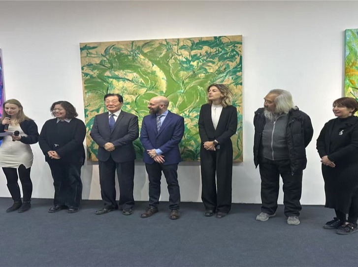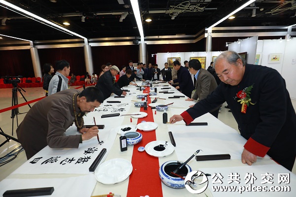 活动上,中外嘉宾共同启动艺术展,艺术家们还在现场进行了艺术创作。