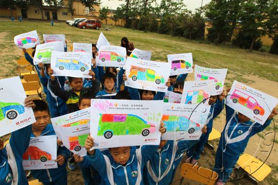 5月9日,郑州日产2014“关怀行万里•赠书大接力”活动走进北京市郊区的农民工子弟小学,为那里的孩子送去价值5万元的儿童读物、体育用品及教学物资,并捐建了由郑州日产冠名的“爱心书屋”。