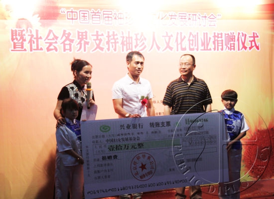 中国妇女发展基金会副秘书长朱锡生、北京市残疾人联合会副理事长吕争鸣、中国残疾人联合会孙一平重点发言,表达了政府有关部门对于矮小残疾人发展的关切和支持,解读相关政策,提出指导意见。共青团中央网络、北京市文化局非遗处有关领导出席活动。祥和华典、天街龙等爱心企业现场为“中国袖珍人文化发展基金”捐助了30万元善款,中残联向袖珍人皮影艺术团捐赠了20台笔记本电脑。(新浪公益)