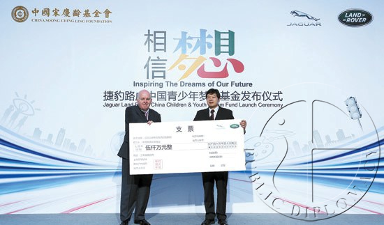 5月28日,由捷豹路虎中国与中国宋庆龄基金会携手设立的“捷豹路虎中国青少年梦想基金”在北京人民大会堂正式宣告成立。捷豹路虎中国将在三年内投入5000万元,专注于国内青少年儿童的成长与发展,立足快乐体育、交通安全、人才培养、社会关爱等四大领域。中国宋庆龄基金会主席胡启立、常务副主席齐鸣秋、副主席井顿泉,捷豹路虎大中华区总裁高博、捷豹路虎中国执行副总裁陆逸、捷豹路虎中国公共关系及企业传播执行副总裁王燕、捷豹中国执行副总裁车艳华等捷豹路虎中国管理层及员工代表,以及热心公益事业的爱心人士张亚东,李亦非等和经销商投资人代表和媒体代表约两百多人出席了本次活动。