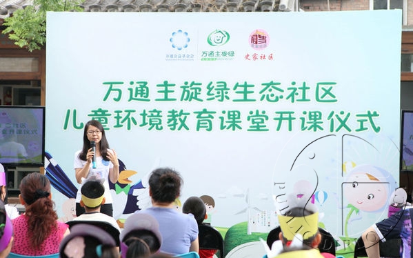 6月21日,由万通公益基金会主办的社区儿童环教课堂开课仪式在史家胡同社区隆重举行。来自社区居委会、社区小朋友及家长、万通企业志愿者、媒体记者共同见证了万通主旋绿生态社区的第一堂儿童环教课开课。
