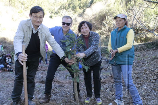 娇韵诗集团董事总经理兼拥有者奥利弗•古登博士,与合作伙伴,当地领导,村民代表合种一棵树。