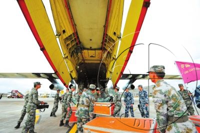中国空军新闻发言人申进科上校4月27日晚间发布消息说,经中央军委批准,空军派出4架伊尔-76飞机,投入尼泊尔抗震救灾。其中3架飞机于27日下午至晚间,相继从成都双流机场飞赴尼泊尔加德满都机场,空运中国军队救灾人员和救援装备。