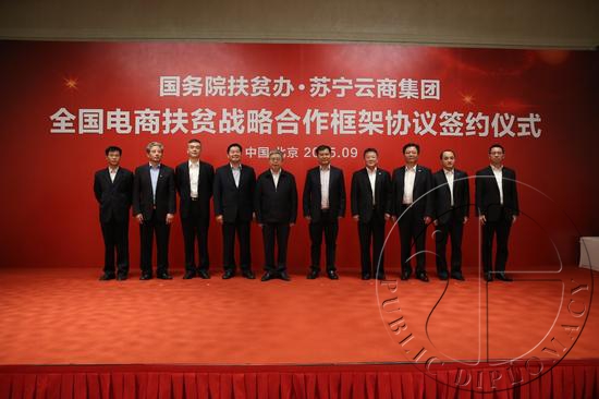 在苏宁集团25年的发展历程中,一直积极参与扶贫开发事业,去年还被国务院扶贫开发领导小组评为社会扶贫先进集体。未来三年,在国务院扶贫办的指导下,苏宁作为国内首家打通线上线下渠道,实现O2O融合运营的互联网零售企业,将率先践行“互联网+”的扶贫开发模式,扩大惠及范围,将企业资源和业务能力进一步投入到“电商扶贫双百示范行动”中,“量身定制”扶贫方案,助力精准扶贫事业的整体提升,以精准扶贫推进全面小康。
