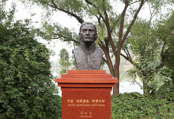 在北京朝阳公园国际名人雕塑园里,安放着由袁熙坤先生创作的玻利瓦尔、圣马丁、聂鲁达等十位拉美民族英雄雕像,及苏联飞鹰、甘地等名人雕塑,供民众怀念、瞻仰。今后,这里又增添了一位乌拉圭民族英雄,希望启发更多的人学习英雄们的先进思想和爱国情怀。(文/公共外交网记者 文杰)