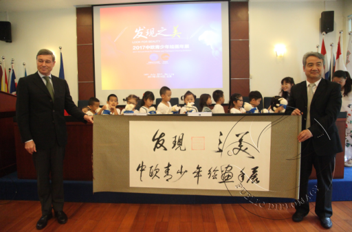 “发现之美”中欧青少年绘画年展正式启动。著名书法家范石泉先生为本次活动题字